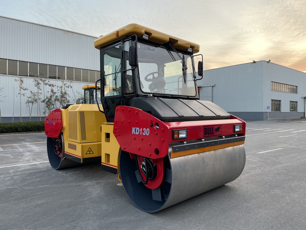 Тандемный сочленённый каток BULL KD130. Полноприводный, полностью гидравлический с системой крабового хода. Сочетание большой массы с манёвренностью и отличной обзорностью поверхности и кромок вальцов.